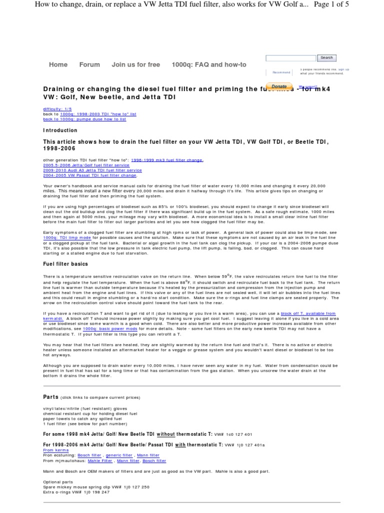 The last thing you want to do is starve the high pressure fuel pump of fuel as it lubricates it. Select your vehicle for those changing a fuel filter themselves, the location and how to remove the clips are the biggest problems. Since the hpfp is prone to failure, priming the fuel system must be performed after the filter element change to ensure that the hpfp is never run dry. Only tool you'll need is philips head screwdriver and new fuel. Based on the radius, a new location list is generated for 02 vw jetta 1.8t. About 12% of these are fuel filers, 0% are cabin filters. Come on down to our 3025 n freeway, pueblo location today to test drive and make an offer on your next description: Car truck ready inline fuel filter an6 an8 an10 100 micron universal high pressu (fits: The fuel filter looks to be under car on pass rear beside the fuel tank. It's a fun and fast car, handles well, gets decent fuel mileage and very reliable, starts. A clogged filter can cause many problems, from rough running. The filter is responsible for preventing debris in the gas tank from entering the fuel system itself. The filter is responsible for preventing debris in the gas tank from entering the fuel system itself.