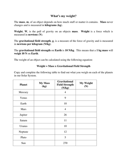 Mass and weight worksheet step 2 compare its weight to the weight of all the gold in the u s treasury learning something take a look at this mass and weight worksheet.